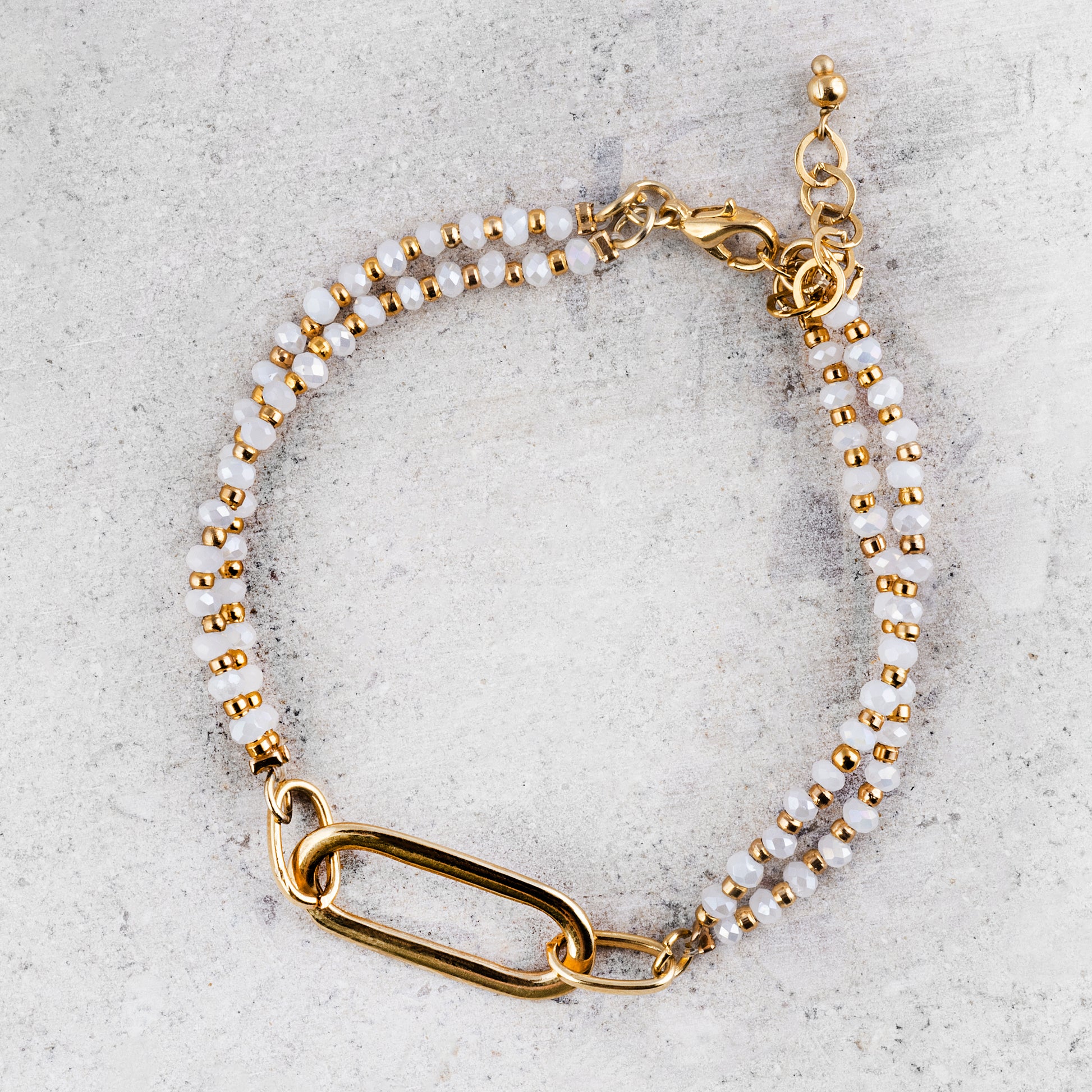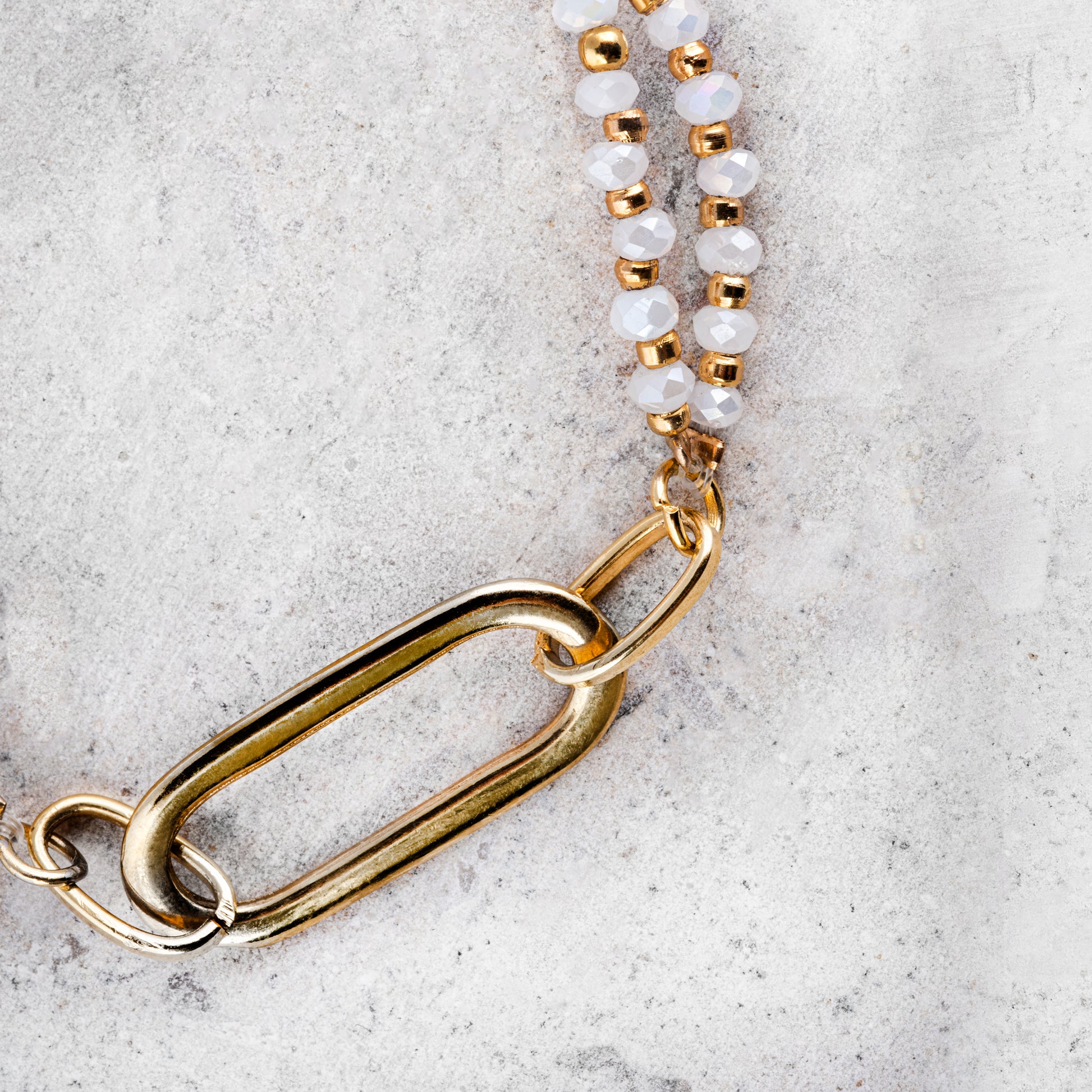 Brazalete elaborado con metal con baño de oro y piedras naturales.